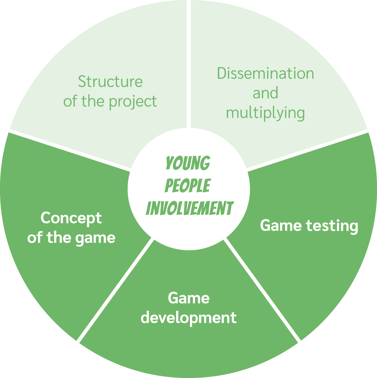 Young people get involved in most game design phases. The project does not include the dissemination and multiplying stage.