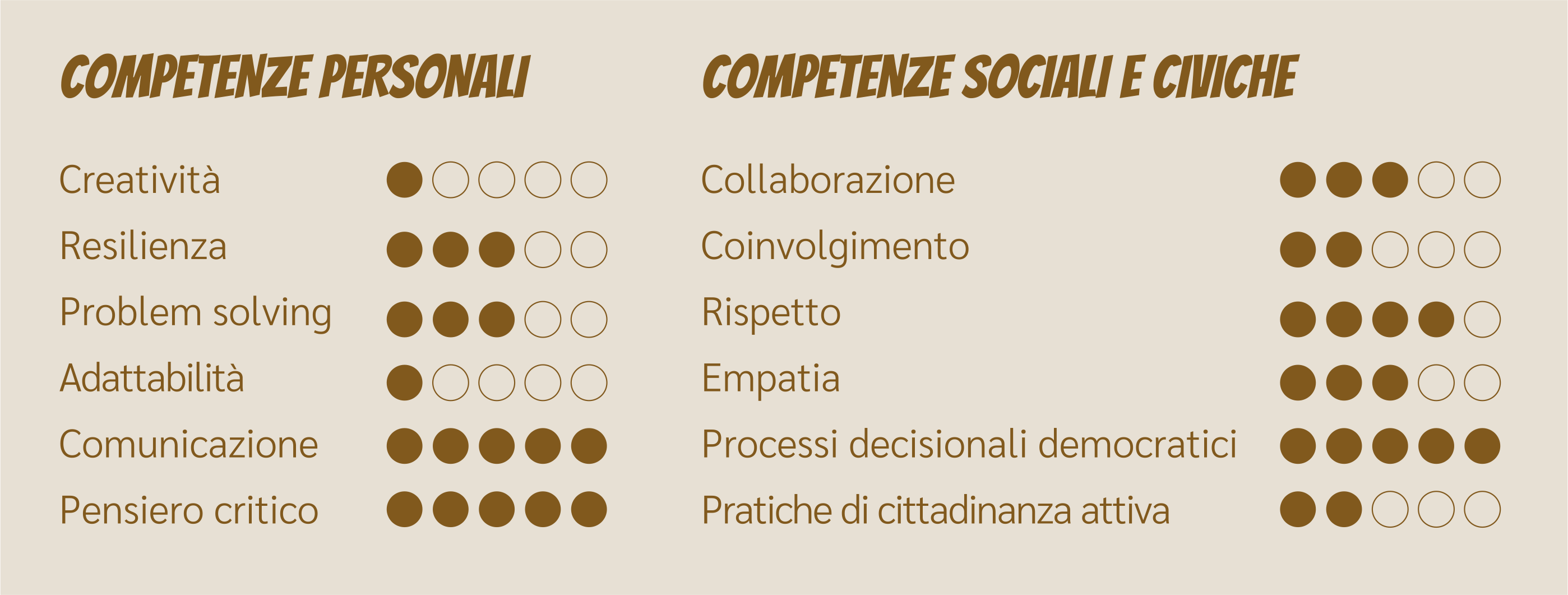 Ecco alcune competenze personali, sociali e civiche che i giovani possono sviluppare nei progetti di game design che seguono il modello Consultivo: