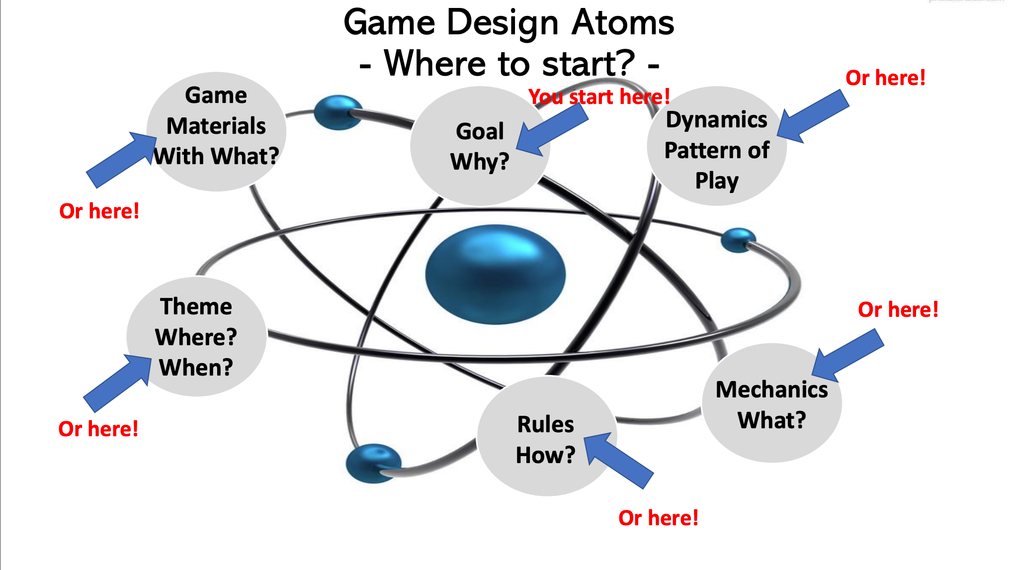 Il bello del creare un gioco è che si può iniziare da dove si vuole, non c’è un punto di partenza giusto o sbagliato: dipende dalle esigenze e preferenze personali, e dall’ispirazione di ciascuno. Puoi avere un’idea di ambientazione e poi da lì definire le meccaniche e lo scopo del gioco, ad esempio, o al contrario partire dalle regole e poi associare loro un tema specifico…