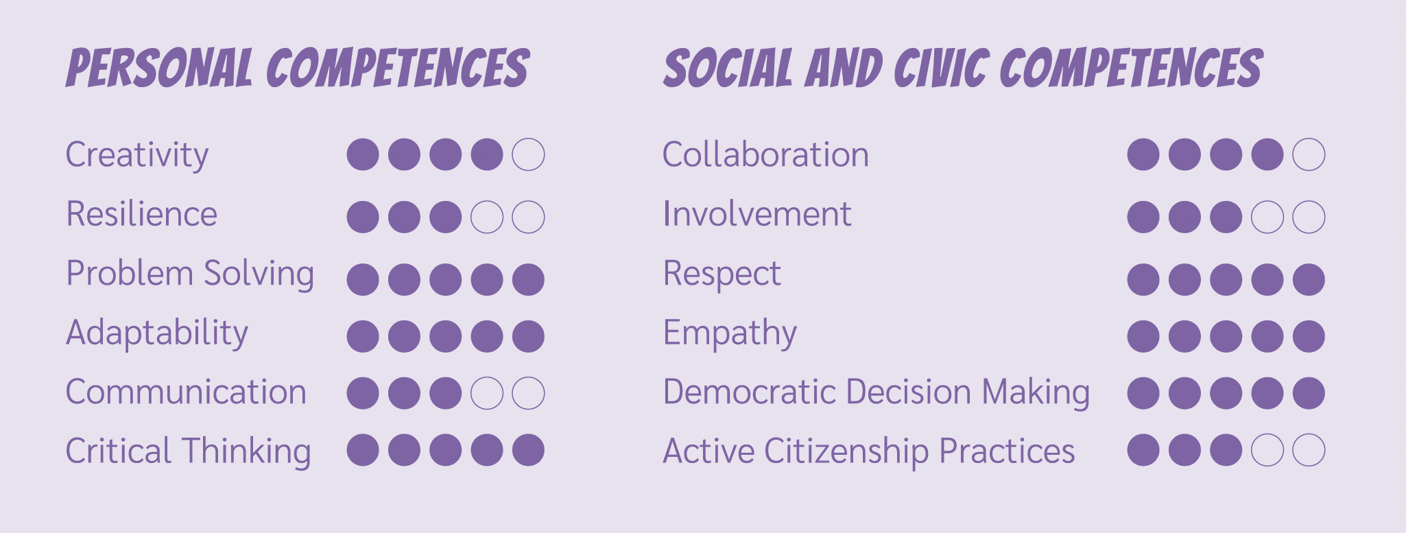 These are some personal, social and civic competences young people can develop in Collaborative game design projects.